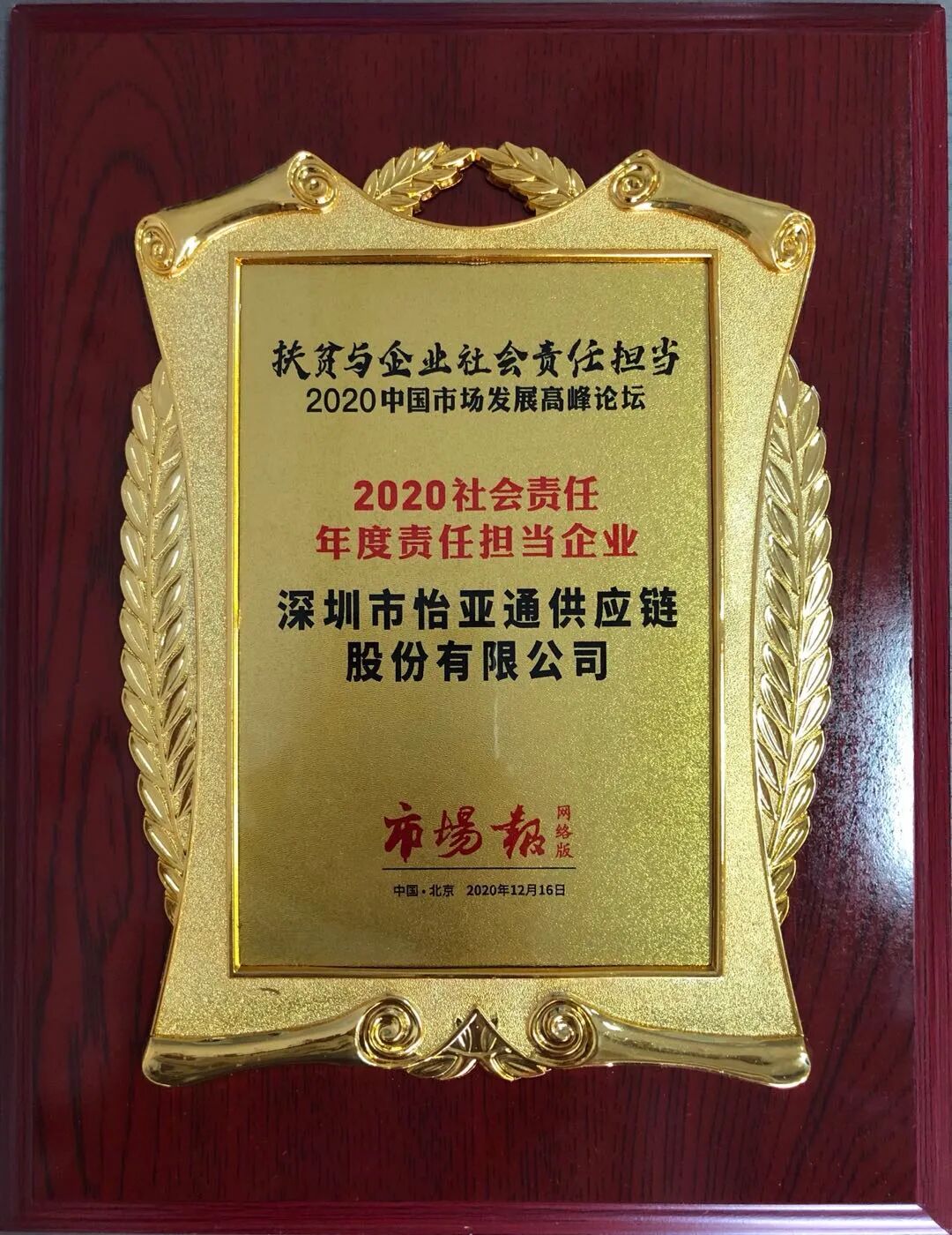 坚持责任与创新并举,怡亚通荣获“2020年度责任担当企业”称号